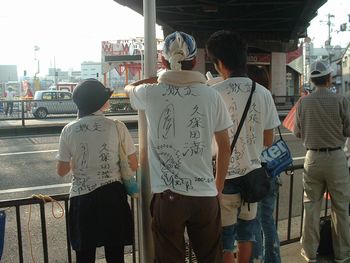 職場の同僚や、ふるさとから応援に来た人々が沿道で待ちます。